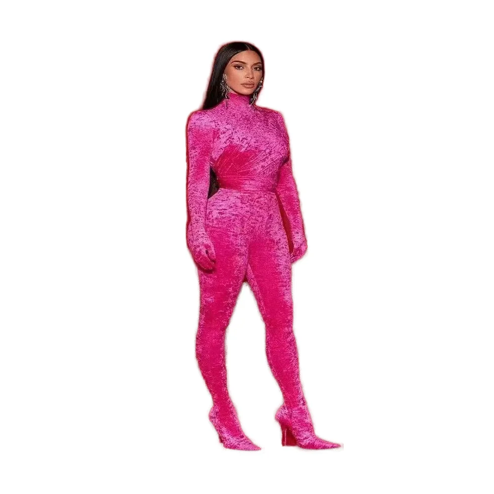 High Waist One-Piece Pants Elegant Rose Red Velvet Sleeve Fashionable Anti-Pilling Summer Casual Clothing Skinny Fit-Hot Sale